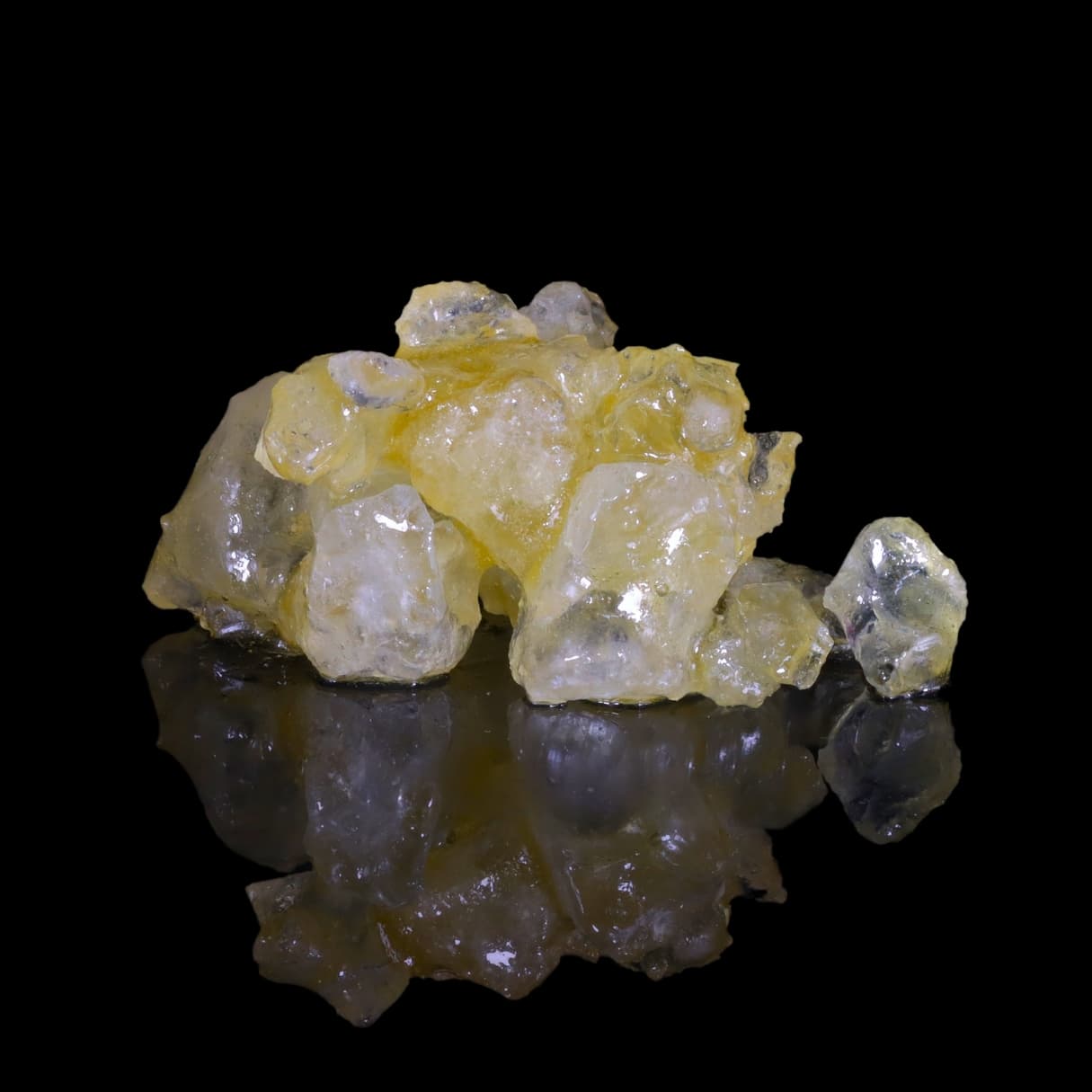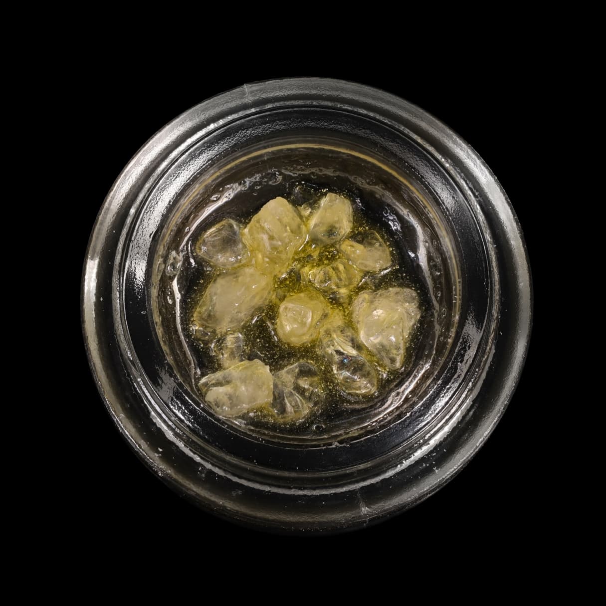 Large THC-A diamond crystals suspended in golden terpene sauce